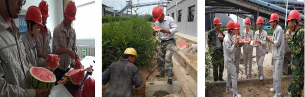 檢修前線(xiàn)后勤服務(wù)暖人心。公司堅(jiān)持“團(tuán)結(jié) 拼搏 求實(shí) 創(chuàng)新”的企業(yè)精神,積極開(kāi)展夏日“送清涼”系列活動(dòng),檢修現(xiàn)場(chǎng)熱火朝天,炎炎夏日,煮好的冰糖菊花水、礦泉水、西瓜等送到新建化驗(yàn)室清掃現(xiàn)場(chǎng)、檢修現(xiàn)場(chǎng),緩解酷熱,增加了員工的熱情和干勁,也保證了高溫環(huán)境下檢修各項(xiàng)工作有條不紊地進(jìn)行,他們時(shí)刻為檢修服務(wù)、為生產(chǎn)服務(wù),確保檢修項(xiàng)目順利、圓滿(mǎn)完成。