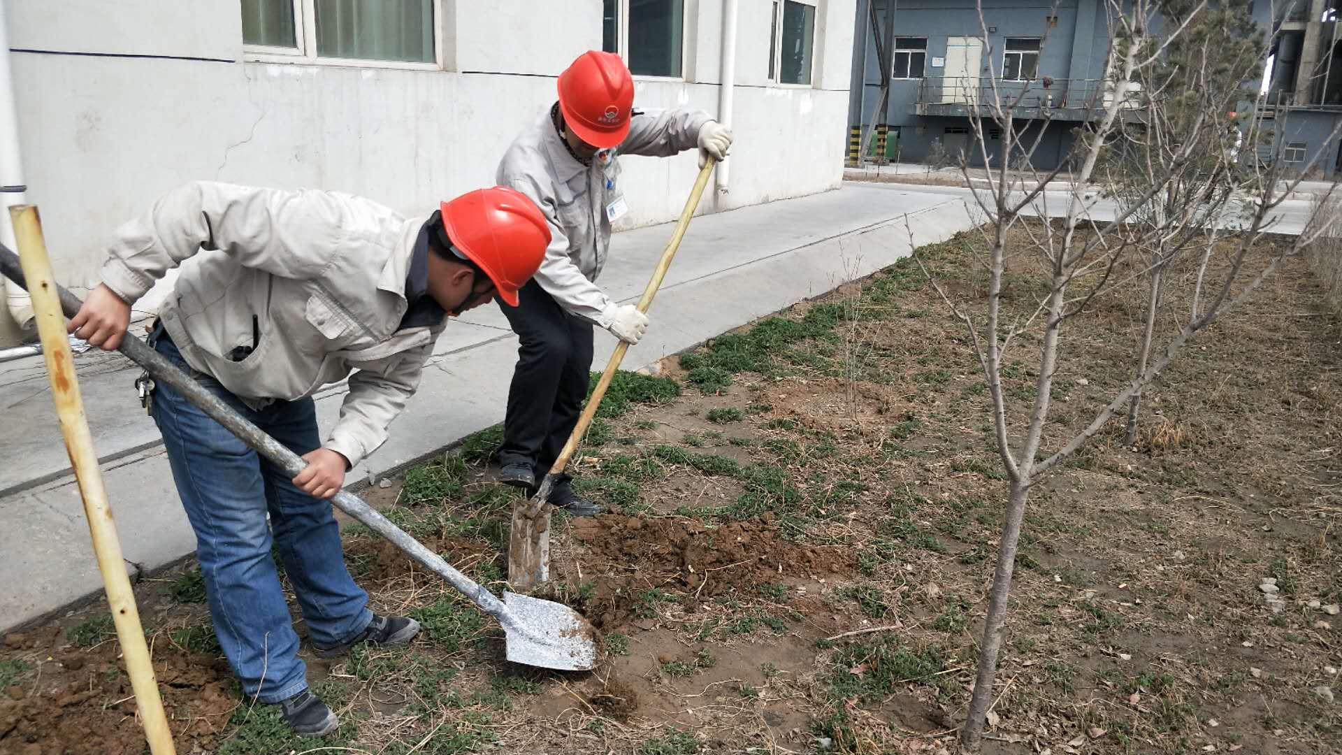 植樹現場,員工們個個精神抖擻,兩人一組,有的扶樹、有的填土、有的澆水,處處都是火熱的勞動場景。期間,大家也融洽的攀談起往昔勞作時的過往,相互交流經驗,培養感情。在公司員工的共同努力下,種植活動圓滿完成,一片片新栽的樹苗錯落有致、迎風挺立,為春天的資源循環增添了一抹新綠,展示著無盡的生機與活力。
