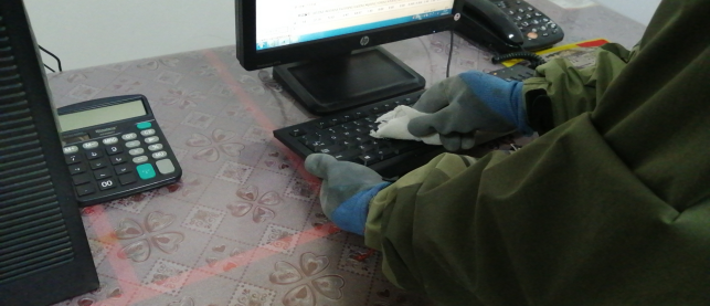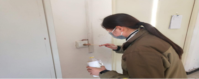 擦拭操作臺、門把手,及時進行衛生消毒