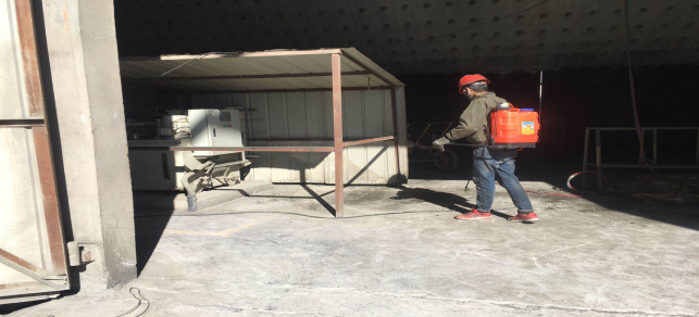 在宿舍進行衛生消毒。