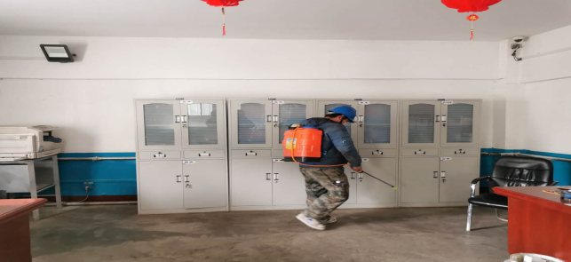對廠區衛生間消毒。