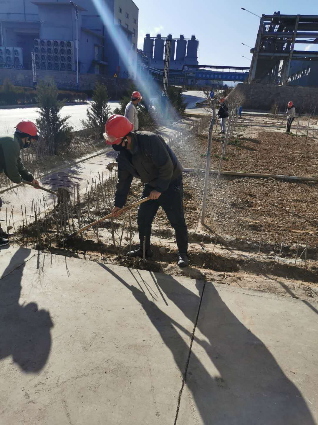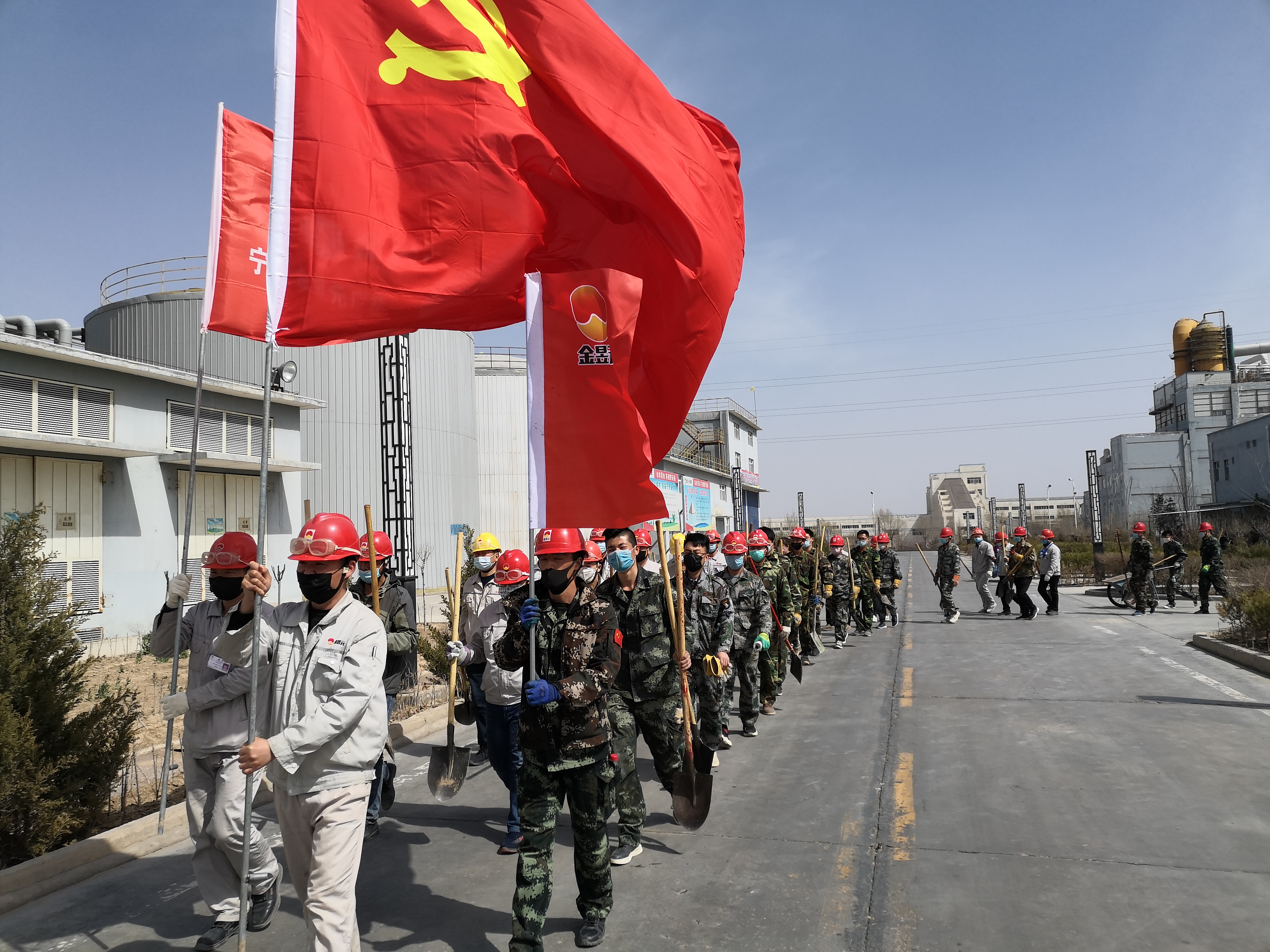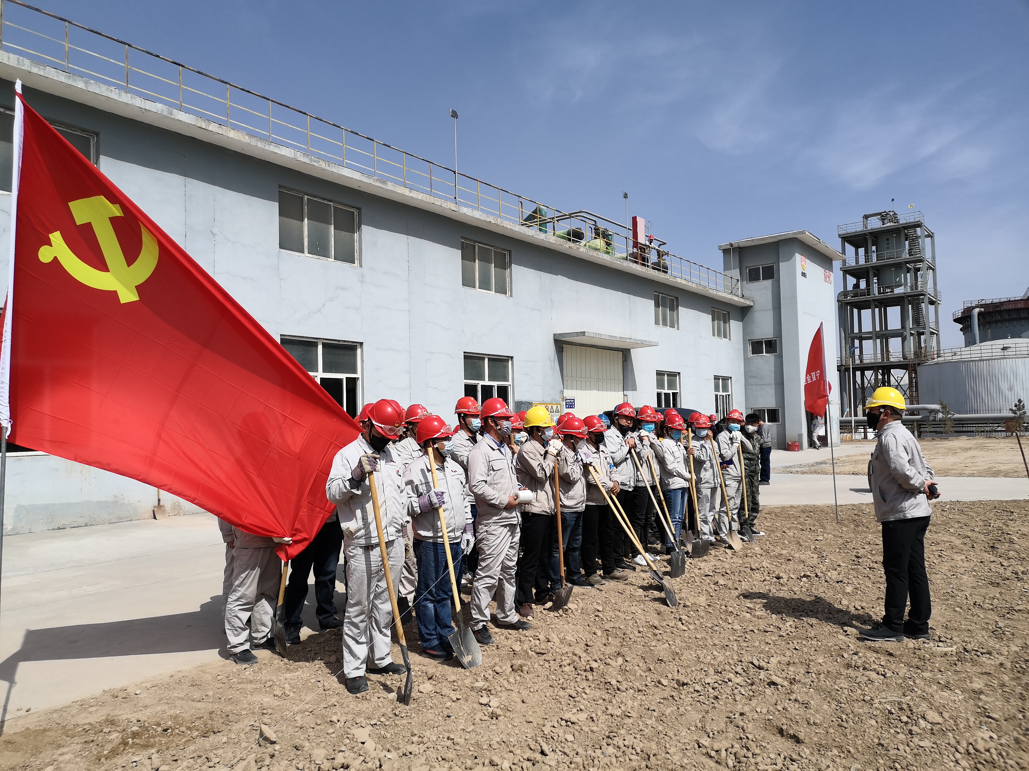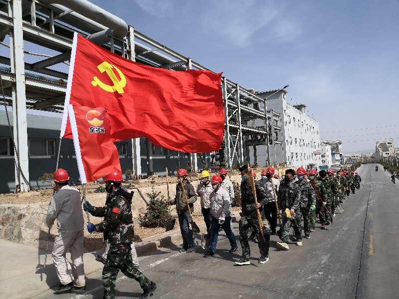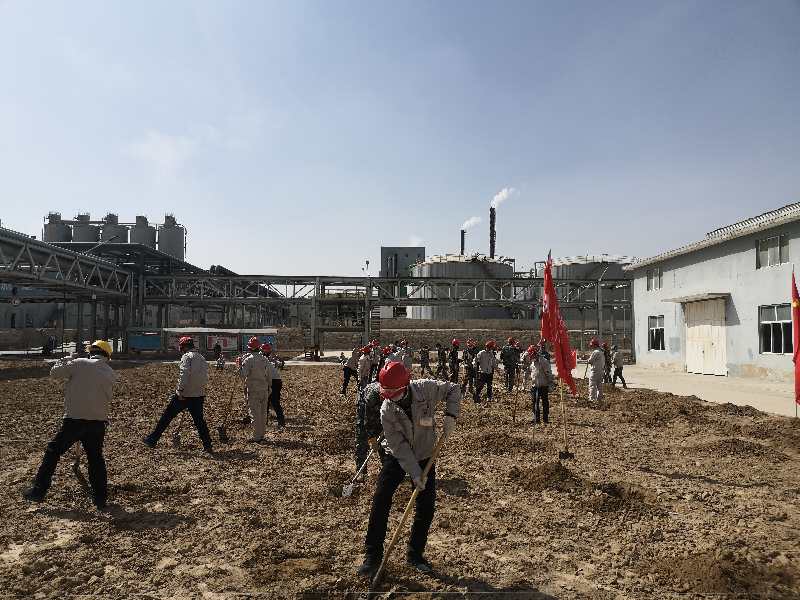 疫情防控下,黨員帶頭堅守一線不松懈;す军h支部書記賈存富帶頭奔赴綠化作業一線,組織各單位黨員對液化崗位土地進行平整,身體力行踐行“不忘初心,牢記使命”。