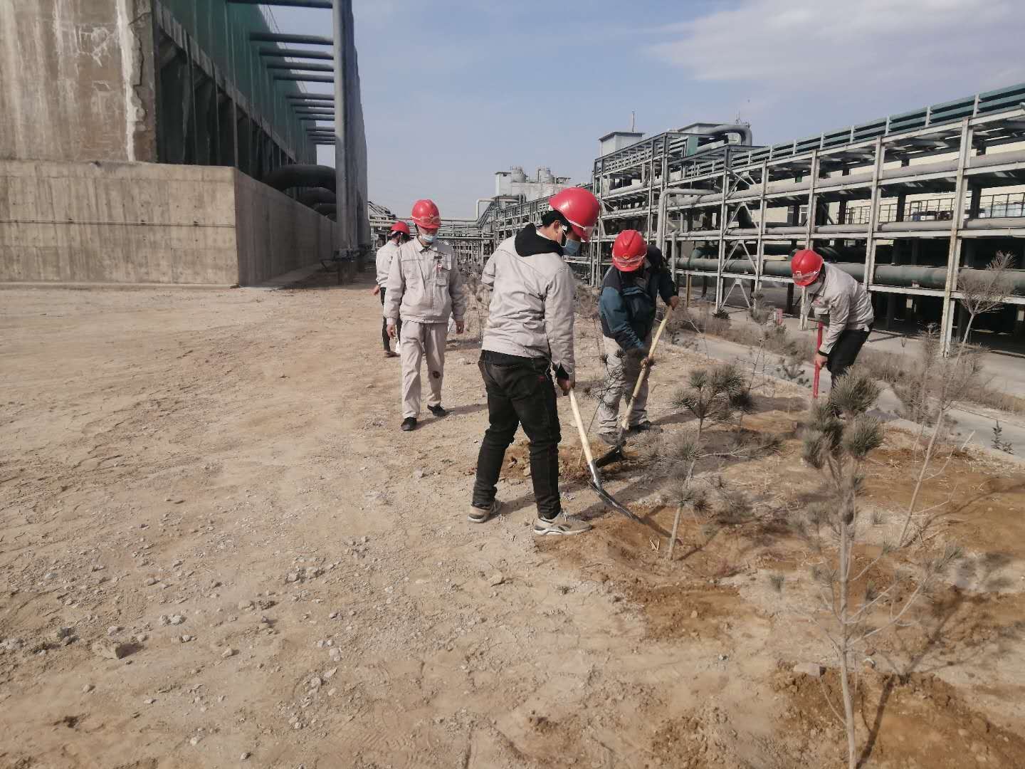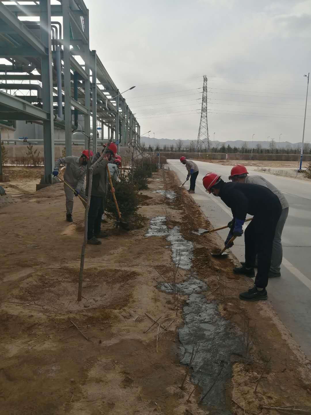 鏟土、扶苗、踩實、澆水……隨著一串串程序性動作一行行樹苗迎風挺立。連日來我公司抓住春季植樹造林的大好時機紛紛行動起來,各裝置責任到人,分工明確,爭相開展植樹綠化活動。
