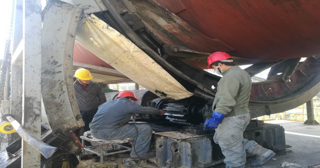 (6)烘干破減速機(jī)齒輪及軸承檢查,更換油封,聯(lián)軸器找正。破碎機(jī)內(nèi)部襯板檢查并緊固螺栓,破碎機(jī)內(nèi)雜物清理(未完成);