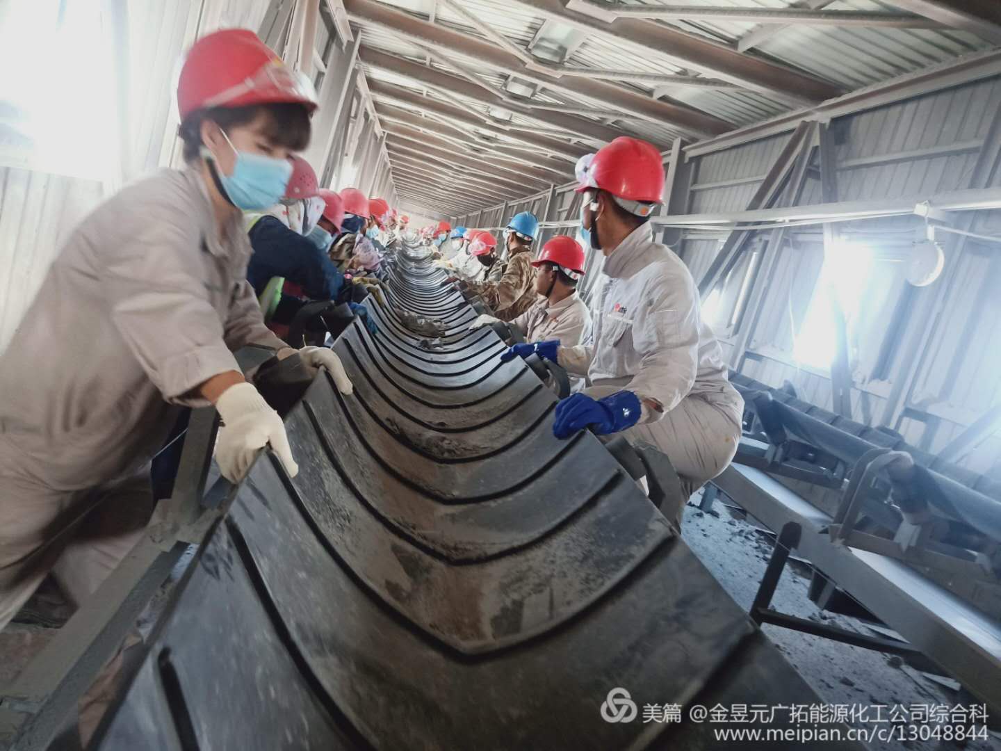 今日,各個裝置協(xié)助乙炔拉皮帶,一聲號子,一股迸發(fā)的力量,厚重的皮帶機在你們的手中,仿佛籃球一般,運用靈活自如,每一個人都是平凡的,但將你們這一群平凡的人聚在一起,就可以創(chuàng)造出不平凡的成果。