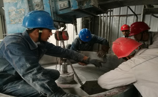 根據檢修計劃安排,此次檢修從9月9日開始,9月23日結束,計劃工期15天。計劃完成檢修標準項目81項,新增18項。參與本次檢修的外協單位共3家,主要有更換窯磚、窯頭密封改造、輥壓機柱釘輥更換、更換預熱器掛片、烘干破管道更換及防腐處理、鎖風下料器更換等檢修內容。