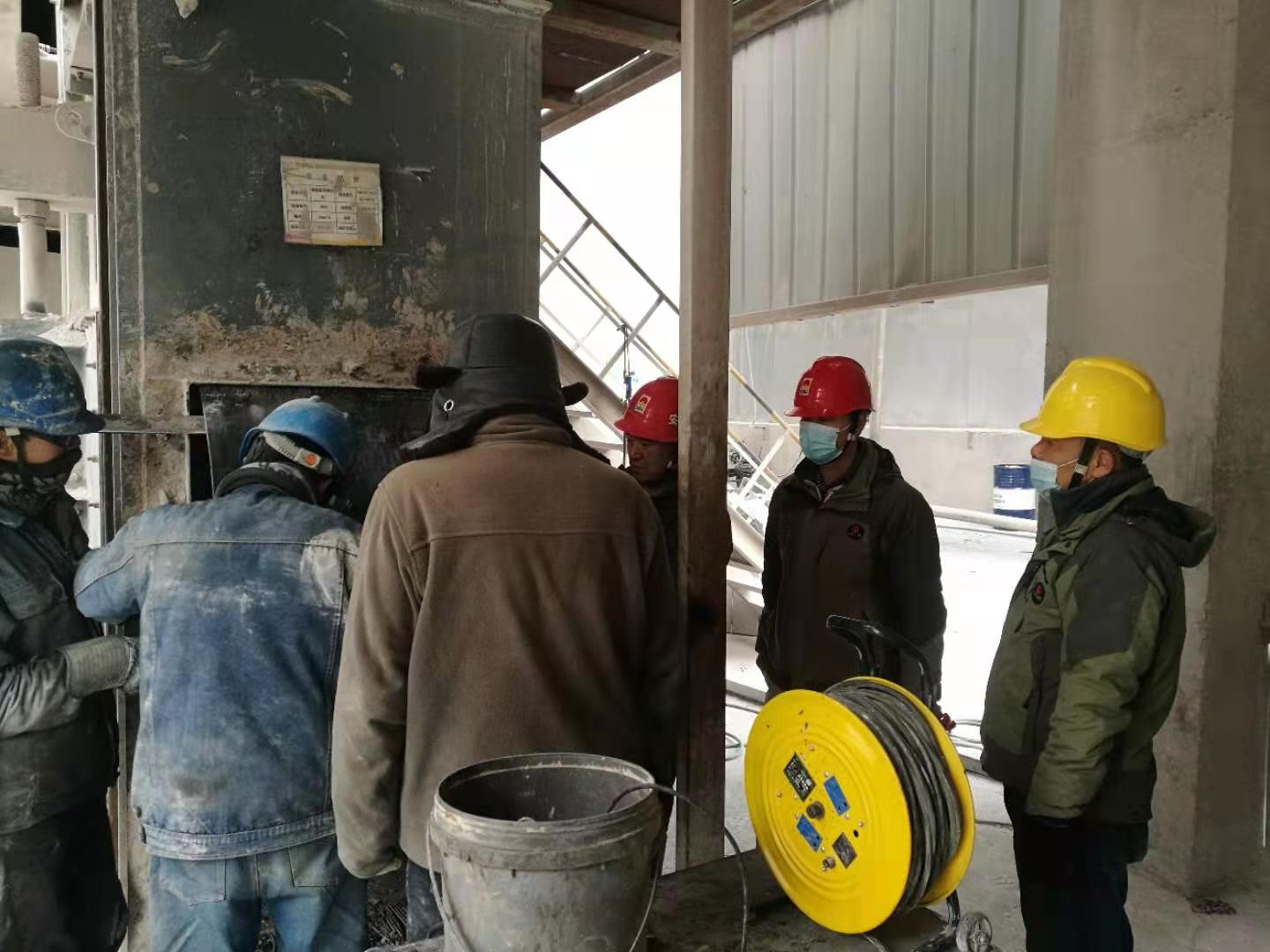檢修作業全程跟蹤,一天一夜檢修下來,有睡在辦公室沒回家的,也有吃飯就在作業現場……比比皆是?偨浝韰羌t衛更是如此,一個作業一個作業現場轉上轉下,從2026提升機作業點到回轉窯主傳減速機,再到篦冷機、煤磨、烘干破、預熱器、2301、2323、2401提升機以及高溫風機、回轉窯窯內及燃燒器檢修現場,指導,建議,一直值守在現場,忙著跟工人們同時收工,一整晚都未歸宿就寢室。工人們,裝置長擔心他的身體,時常提醒讓他回去休息一下,喝口水,而他放心、安慰大家說,“我和大家一樣的心情,早完工,產量就能早生產一點,我們后續生產就能輕松一點,大家加油”。一直以來,他和這個班子成員、工人們一起頂著嚴寒,一直堅守在現場安全履職和協調把控檢修進度,不厭其煩的一次次的詳細交底,直到一項一項設備檢修更換完畢。