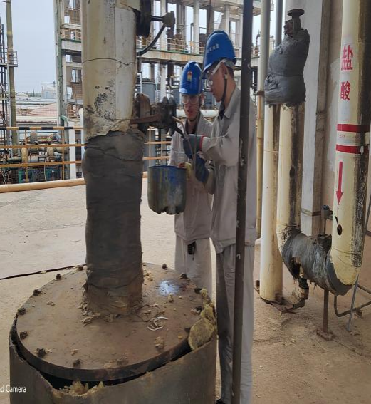 下午在氯化氫一期三樓檢查干燥塔溫度計,首先從庫房里拿腳手架并搬到氯化氫三樓,一個人監護,一個人登高,還有一個人小心的扶著腳手架。登高的人在腳手架上我們看著真威風,安全帶掛好后,同事給傳遞著工具,他拿起扳手將四個法蘭上的螺栓慢慢擰下來,一點一點將溫度計從法蘭里取出來,檢查沒有問題的時候,將生銹的四顆螺栓進行處理,并涂抹上黃油。法蘭與溫度計之間的墊子更換后緊緊纏上生料帶,在把溫度計慢慢的放到法欄里面,并將四顆螺栓緊固,周邊都涂抹上黃油,包裹上塑料膜,做好相應的防護后,今天下午檢查工作就圓滿完成。我們把現場的垃圾進行清理,做到工完料盡場地清。