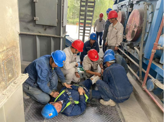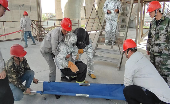 結(jié)合各生產(chǎn)崗位實(shí)際,化整為零組織開展了“高處墜落”“預(yù)熱器物料灼燙”“高壓開關(guān)柜著火”“鹽酸灼燙”“夏季高溫中暑”事故應(yīng)急救援演練,通過模擬實(shí)戰(zhàn)場(chǎng)景,提升全員快速反應(yīng)能力,強(qiáng)化應(yīng)急處置水平。