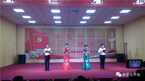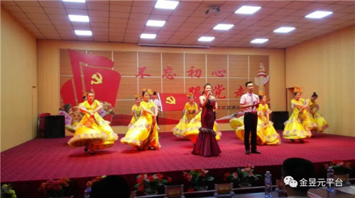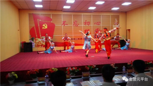 會后,以“不忘初心跟黨走”為主題,舉辦了慶祝建黨97周年文藝演出,演出圍繞“頌歌獻給黨”這一主要演出內容,以歌舞、大合唱、詩朗誦、四重唱為主要表現形式,還自編創作了小品《我想入黨》,音樂快板《幸福金昱元》,營造了歌頌黨、歌頌人民、歌頌改革開放和企業發展取得的偉大成就,暢想新時代、中國夢。