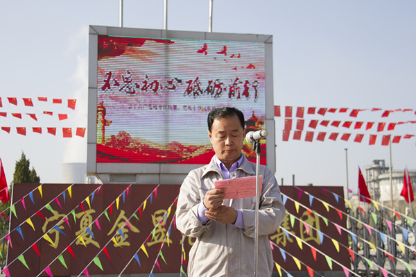 升國(guó)旗儀式伊始,集團(tuán)公司黨委副書記王立軍,集團(tuán)公司副總裁、青銅峽片區(qū)總經(jīng)理尚興向升國(guó)旗儀式致辭。