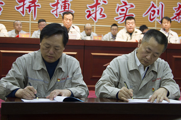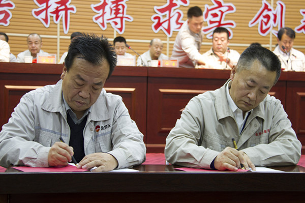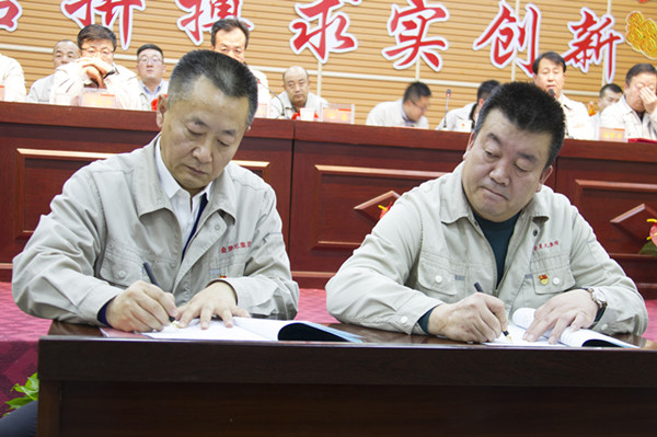 會上,集團高層領導和各主管領導以及各片區(qū)主管領導簽訂目標責任書。