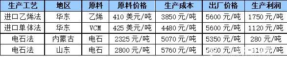 乙烯法PVC的成本優(yōu)勢凸顯