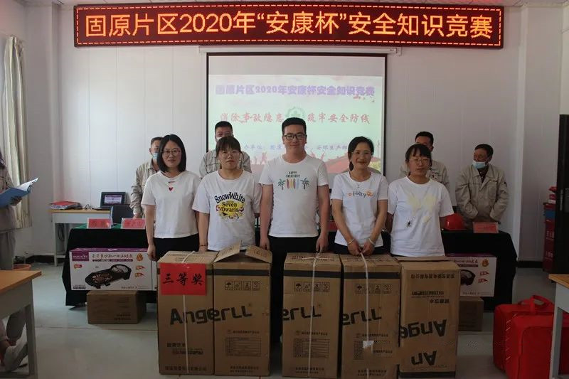 固原片區實行現場答題競賽,共有6支代表隊參加競賽,每隊由5名隊員組成,競賽設必答題、圖表分析題、搶答題和觀眾互動四個環節。6支代表隊你追我趕,十分激烈,選手們精彩的競答不時贏得場下觀眾陣陣喝彩。過經3個小時的激烈角逐,最終炔烴節能公司代表隊獲得固原片區競賽第一名。