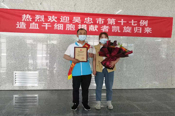 5月12日,劉治成返回吳忠,集團(tuán)公司黨委副書記王立軍、支部書記唐亮等領(lǐng)導(dǎo),熱烈迎接這位造血干細(xì)胞捐獻(xiàn)者獻(xiàn)凱旋歸來。
