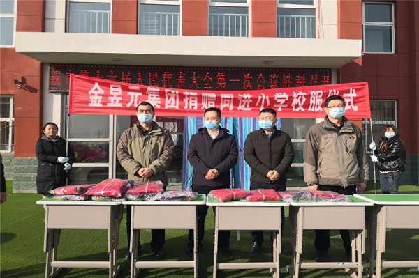 此次捐贈活動,金昱元集團向固原市原州區(qū)寨科鄉(xiāng)各小學、學前班共捐贈522套校服,向青銅峽市同進小學、學前班捐贈666套校服,向廣武中心小學捐贈95套校服。