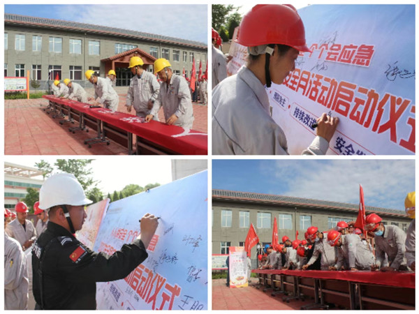 參加啟動儀式的人員莊嚴宣誓,嚴格遵守公司各項安全管理制度,堅守安全紅線,從自身做起、從細微處做起,牢固樹立安全意識,及時消除安全隱患,堅決制止違章作業,有力抵制一切不安全因素,做一名合格的安全生產者。