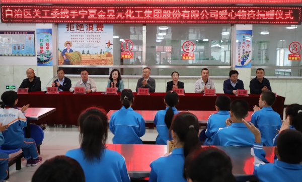 寧夏金昱元化工集團股份有限公司向彭陽縣王洼鎮中學捐助10萬元,用于購置辦公設施、體育器材、生活用品等。