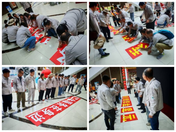 在拓展訓(xùn)練中,各組成員周密安排,明確分工,高效快捷地進(jìn)行拼字。在激烈的角逐中,助威聲、喝彩聲響成一片。當(dāng)“工會(huì)服務(wù)在身邊,我們愛(ài)您金昱元”十四個(gè)大字整齊拼成后,大家喜笑顏開、熱烈歡呼,對(duì)工會(huì)組織的感恩之情和對(duì)企業(yè)的自豪感與榮譽(yù)感油然而生。